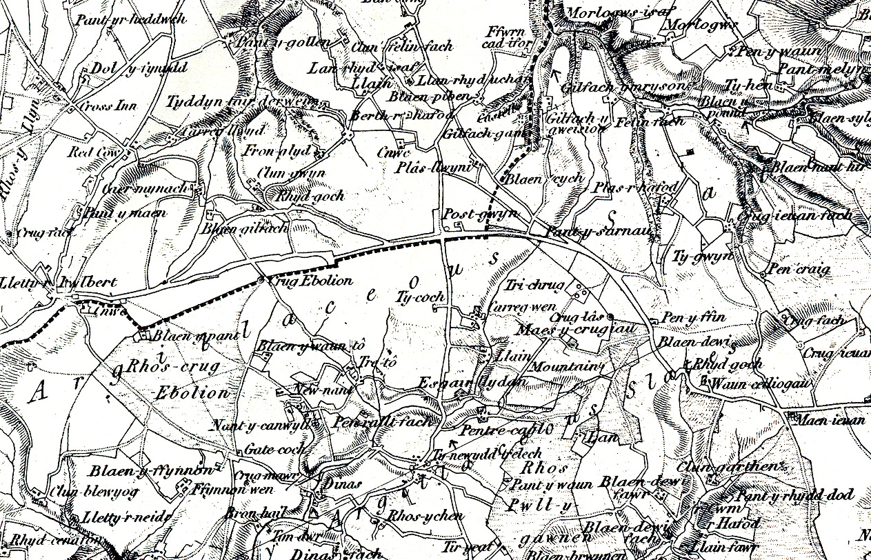 | 1814 | Ordnance Survey | Capel Iwan centre right (perhaps) | ||
