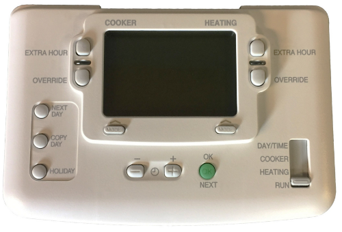 | Original version (It is actually a re-worded Honeywell ST6400C) | Has the "Cooker" and "Heating" properly labelled | Presumably it's defective | |