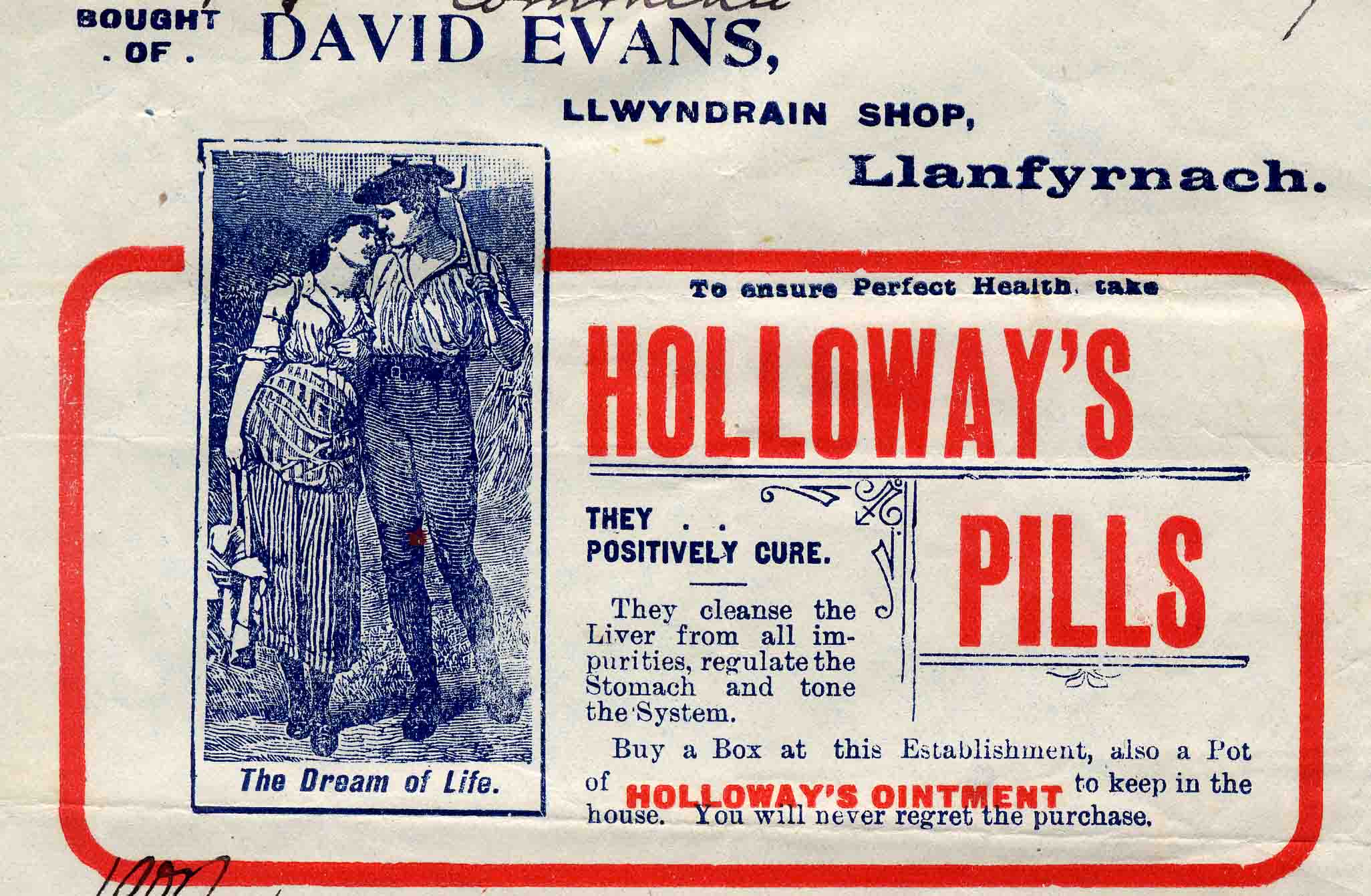 | With an advert for Holloway's pills - "To ensure perfect health" & "They positively cure" | ||||